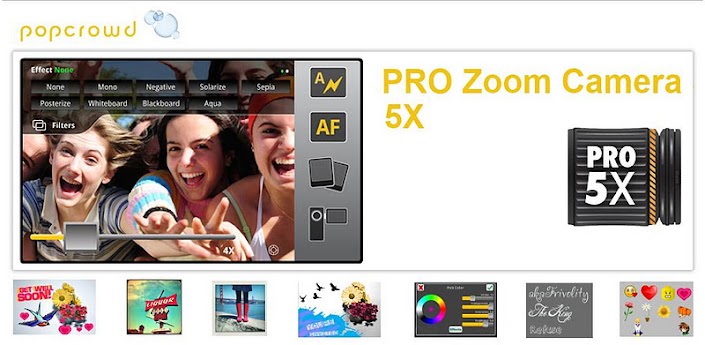 Replace default camera app with 5x ZOOM, 5 whitebals, 27 filters & crazy effects